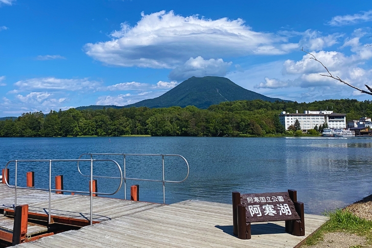 阿寒湖是由雄阿寒岳噴發形成的火山口湖,來阿寒湖除了走沿岸步道欣賞阿寒湖景色,阿寒湖遊覽船會繞阿寒湖一圈,船程大約85分鐘,中途會停靠15分鐘綠球藻展示觀察中心,可以觀看野生綠藻球與阿寒湖當中最大的綠藻球。