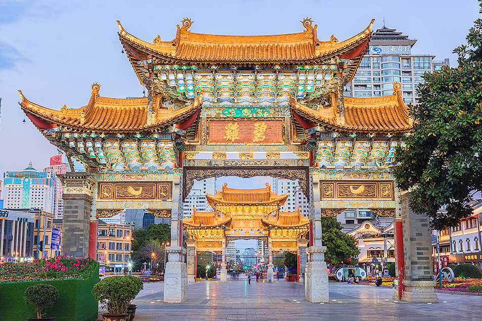 今天集合於國際機場,由專人為您辦理登機手續,隨即搭乘豪華客機,轉機飛往一個景色優美的城市,雲南省省會─昆明,又稱春城。春城昆明是一 座有著花一樣浪漫情懷的城市。“天氣常如二三月,花開不斷四時春”,那裡天總是藍的,傍晚的雲是五彩的,城內滿眼是綠草鮮花,當然還有清新的空氣和燦爛的陽光。