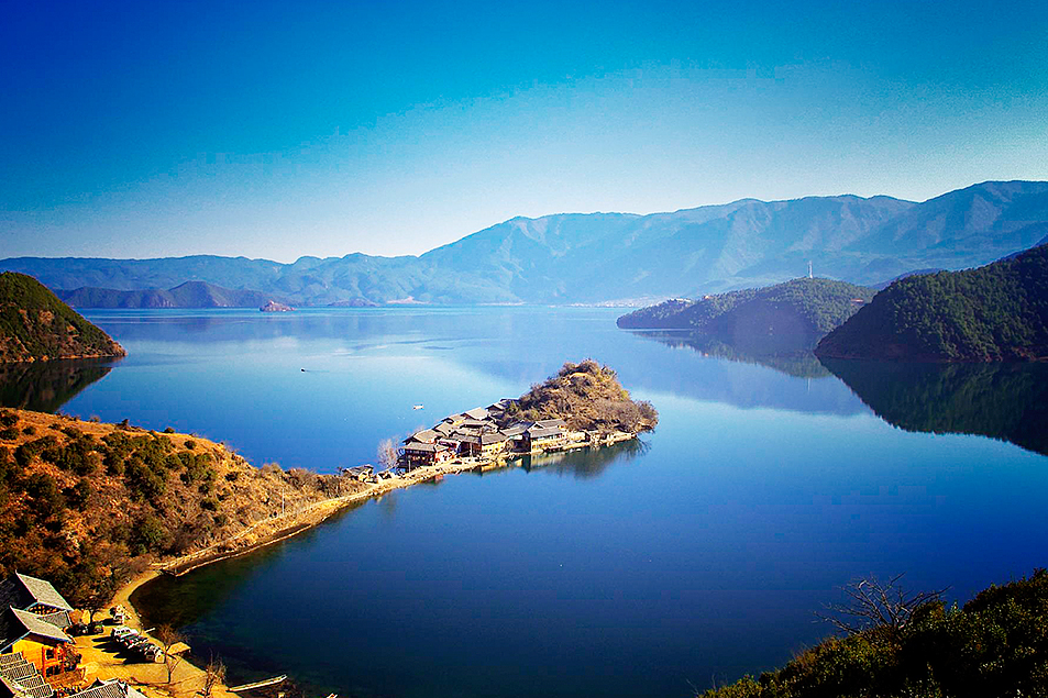 【里務比島】摩梭人最早居住的一個島嶼,里務比島四面環水,綠樹成蔭,鳥語花香,風景優美,島上有寺-里務比寺;里務比島的最高處,古時麗江納西族土司首領木生白曾建有一座古老的瞭望塔,後來被毀,僅存遺跡。