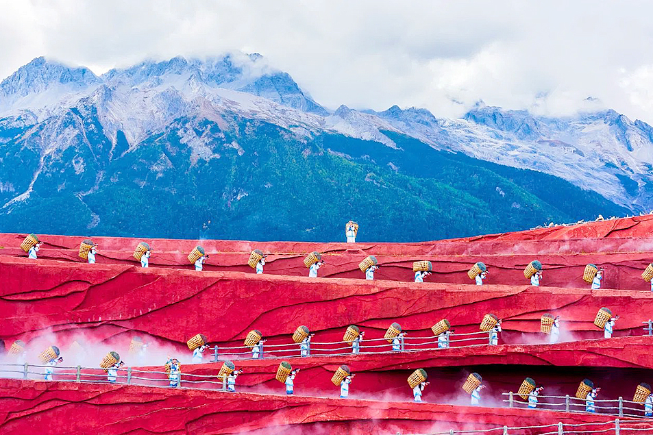 【印象麗江秀】大型實景演出,由著名導演張藝謀、王潮歌和樊躍共同執導。其中《印象·麗江》雪山篇將劇場設在海拔3100米玉龍雪山的懷抱裏,四周高山草甸、白雲繚繞,將觀眾帶到了雪域高原天人合一的純美背景中。在可容納1200餘人的360度全視角劇場中,用象徵著雲貴高原紅土的紅色沙石砌成了12米高、迂回艱險的“茶馬古道”。實景演出以玉龍雪山的自然風光為天然背景,以納西民族為主的當地民俗民風構成了演出場景。動用演員達五百餘人,皆為當地人,力圖表現散居麗江的十個少數民族的基本生活形態 。