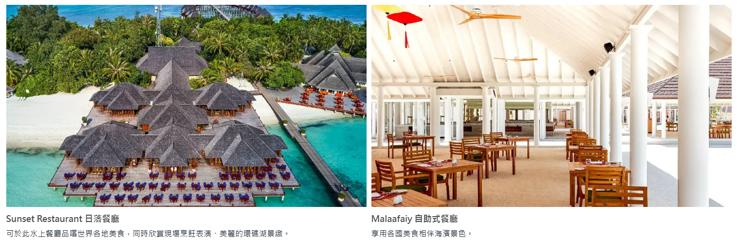 註:Sunset Restaurant 供入住主島客人使用、Malaafaiy Restaurant 供入住夢幻島客人使用