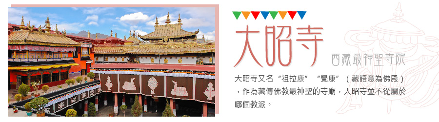 【大昭寺(下車參觀)】作為“西藏的眼睛”,現已成為拉薩真正的中心,信徒們朝拜的聖地。大昭寺藏語為“覺康”,是藏傳佛教信徒朝聖的終點,它的神聖,並不遜於布達拉宮。當年松贊幹布為紀念文成公主入藏而建;人們常說“先有大昭寺,後有拉薩城”。寺內最大的看頭是當年文成公主入蕃時帶來的釋迦摩尼十二歲等身像;拉薩之所以被稱為“聖地”,就與這座佛像有關。遊玩時別忘了登上三樓平臺,這裏是遙望布達拉宮、俯瞰大昭寺廣場好地方。每年藏曆正月十五的酥油花燈會和藏曆十月十五的吉祥天母節是大昭寺及八廓街最熱鬧的時候。