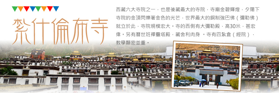 【後藏中心-紮什倫布寺】殿宇隨山勢次第銜接,錯落有致,於不經意間提現和諧對稱之美。全國著名六大黃教寺院之一,背附高山坐北朝陽,殿宇依次遞接,疏密均衡和諧對稱。