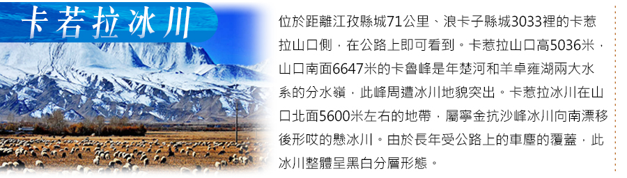 【雪域靜美人-卡若拉冰川】電影《紅河谷》、《江孜之戰》《雲水謠》曾在此拍攝外景。
