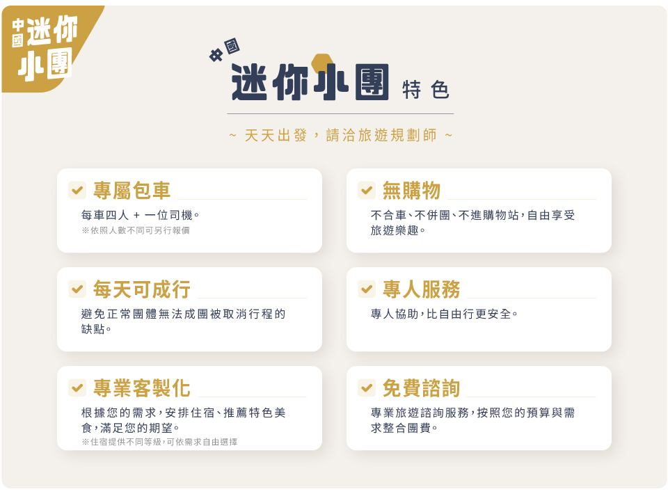本行程最低出發人數為4名成人以上(含),依實際報名人數安排車型。