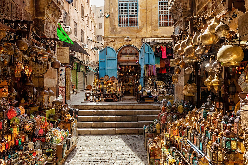 在這裡,你能聽到工匠敲打金屬的節奏,也能聞到咖啡與薄荷水煙的味道;商販熱情招呼、遊客笑聲交織,是開羅最「活著」的一面。坐在百年咖啡館品茶,或在攤商間細看工藝品,都是探索市集的樂趣。
