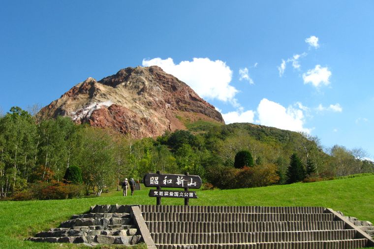【昭和新山】昭和18年12月28日,周圍發生大地震,天旋地轉造成有珠山東南側火口爆發後,因為頻繁的火山活動持續著,在同年11月形成了「溶岩圓頂丘」,直到昭和20年9月20日火山活動停止後,生成了高407公尺的山,由於在昭和年間發生,因此稱此山為「昭和新山」。是本世紀最新的火山。