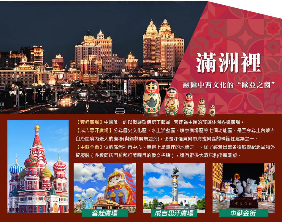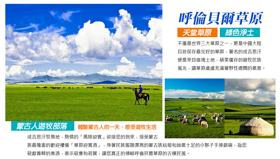 2026/05/15(五) | 桃園國際機場出發 呼倫貝爾大草原 滿洲里 漠河 北極村 五大連池 哈爾濱10日海拉爾進/哈爾濱出,雙點進出,不走回頭路.(贈送網卡)機位 20 候補0 已售0 可售20 |