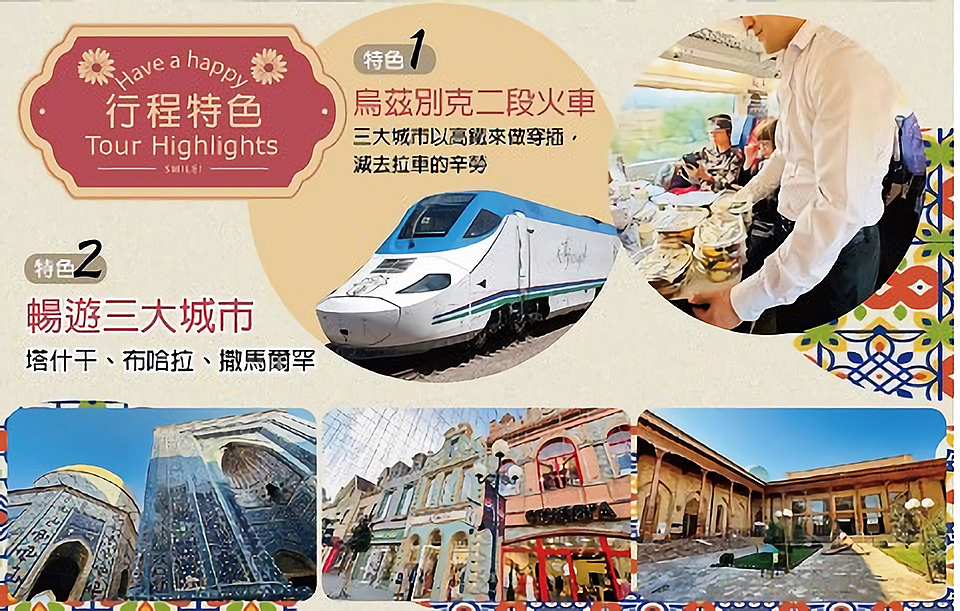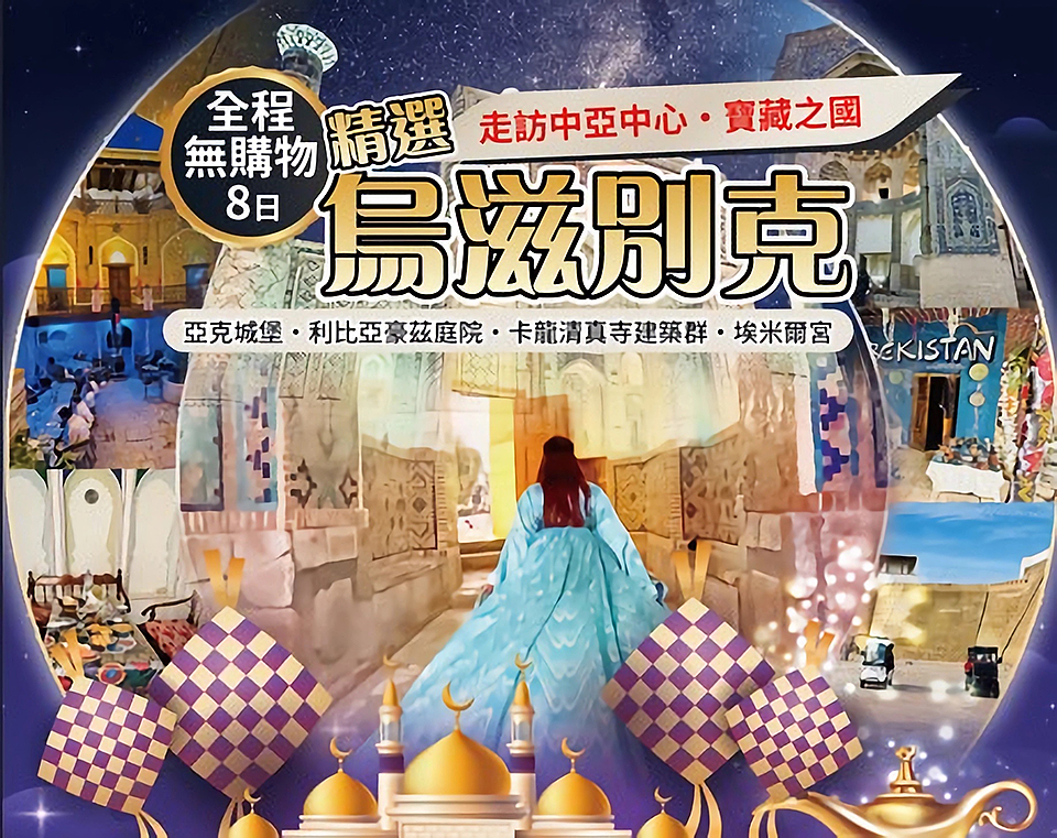 【撒馬爾永恆之城夜景The Eternal City】在這座占地超過17公頃的現代古城裡,領略這片歷史悠久的土地,並感受生活在這片土地上的烏茲別克斯坦人民的傳統文化。在這條狹長的街道上遍佈藝術家、工匠以及手工藝人的店鋪。永恆之城的亭臺樓閣原型是古籍中描述的真實建築和風景如畫的城市廣場。在這裡,你將沉浸在美麗的東方童話裡—綠松石藍穹頂,宮殿的裝飾壁畫以及高聳入雲的清真寺高塔。 **高鐵時間僅供參考,以實際搭乘時間為主**