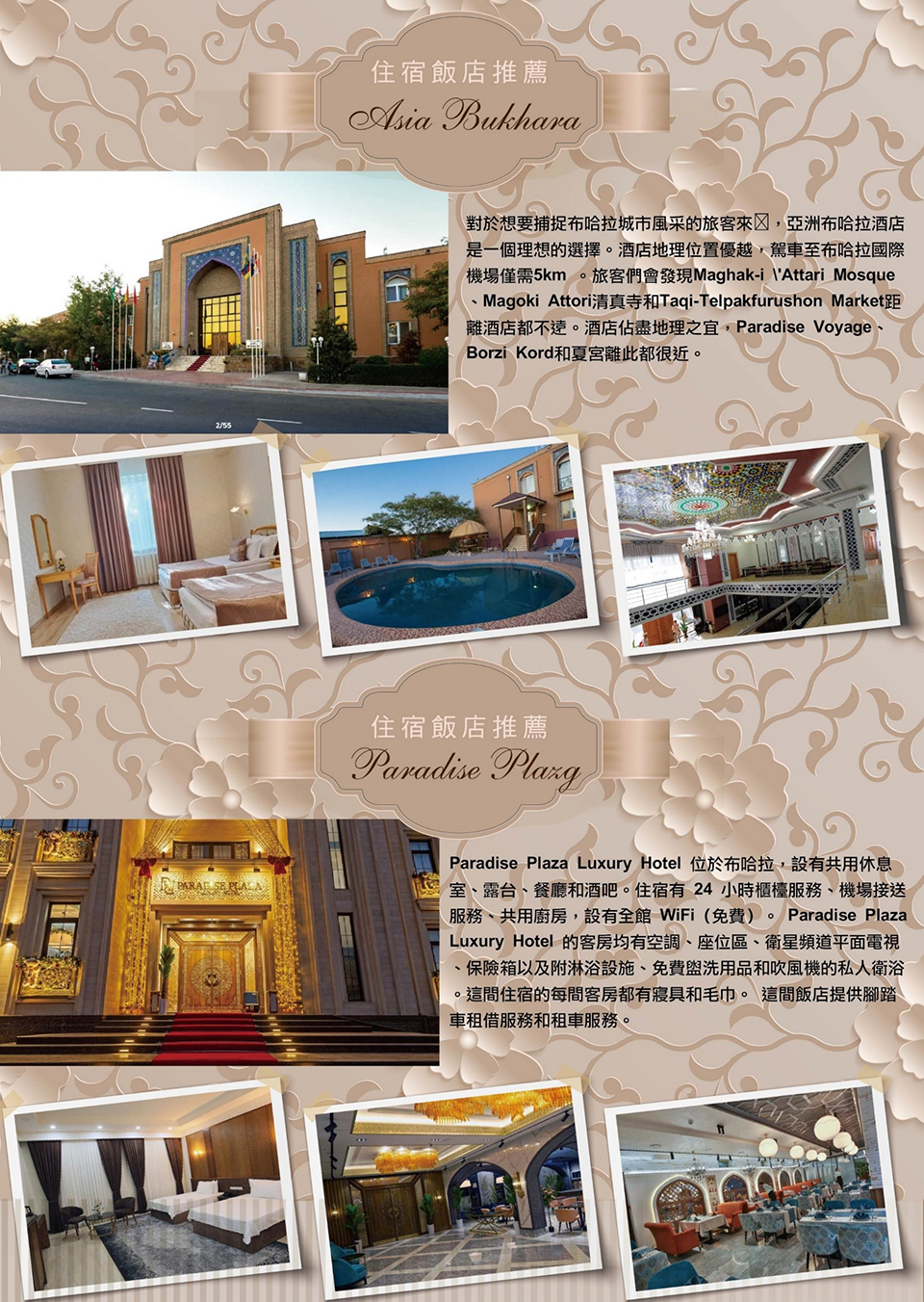 住宿:布哈拉Asia Bukhara Hotel 或 Paradise Plaza Hotel 或同等級