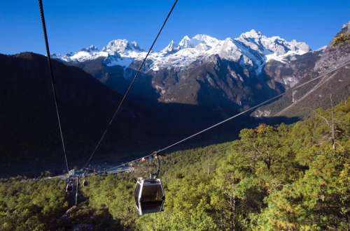 【雲杉坪索道】雲杉坪索道是玉龍雪山景區三條索道之一,也稱為小索道。遊客可以從位於白水河附近的索道下站乘坐索道,直達雲杉坪。在這裡可以觀賞到茂密的雲杉樹林、高山草甸,還可以觀看玉龍雪峰,景色壯觀。