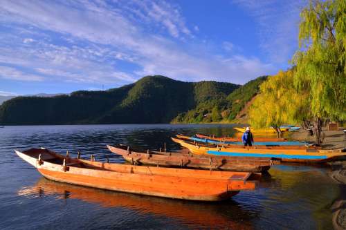 【豬槽船遊裡務比島】裡務比島位於瀘沽湖中,乘坐傳統豬槽船緩緩划向島上,彷彿穿越在水面上的時光隧道。船身小巧,搖曳於湖光山色之間,湖面映照四周雪山與茂密森林,湖水清澈見底。島上保留摩梭人傳統民居與獨特文化,踏上小徑,你可以欣賞湖畔風光、拍攝湖光山色的唯美照片,還能與當地居民互動,了解摩梭婚俗與生活方式。豬槽船的慢遊節奏,讓旅客徹底沉浸在瀘沽湖的靜謐與自然美景之中,是探訪瀘沽湖必體驗的經典方式。