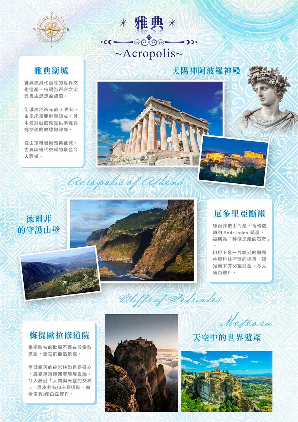 希臘最具代表性的古蹟與世界文化遺產,象徵西方文明的發源地。建於西元前5世紀,