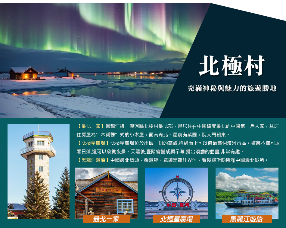 漠河-(1H)北極村【九曲十八彎、北極星廣場】-北極村【最北一家、北極廣場、最北郵局、北陲哨所、黑龍江遊船】