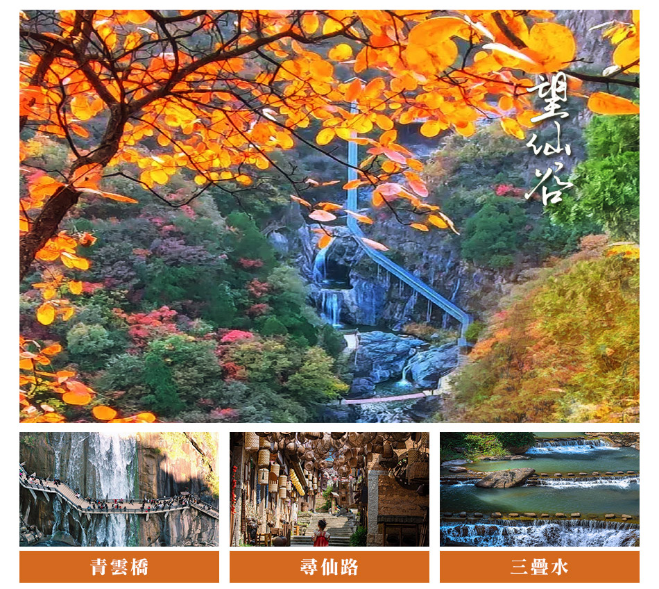 1、現實版世外桃源葛仙村+ 中華靈寶第一山葛仙山 +懸崖上的仙俠世界望仙谷,再送夜間大型水幕電影《修心歸真紀》。