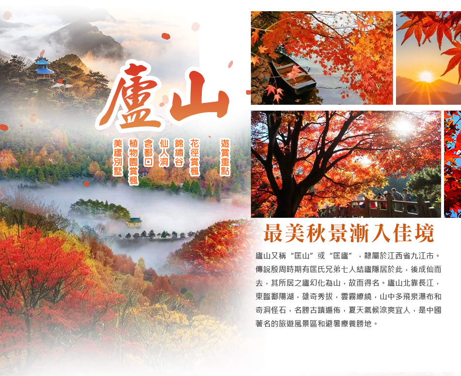楓紅江西仙境望仙谷、婺源篁嶺、廬山、鳳凰溝、葛仙村8日 贈送大閘蟹吃到飽、三大網紅絕美仙境 遇見婺源+非遺打鐵花 |
