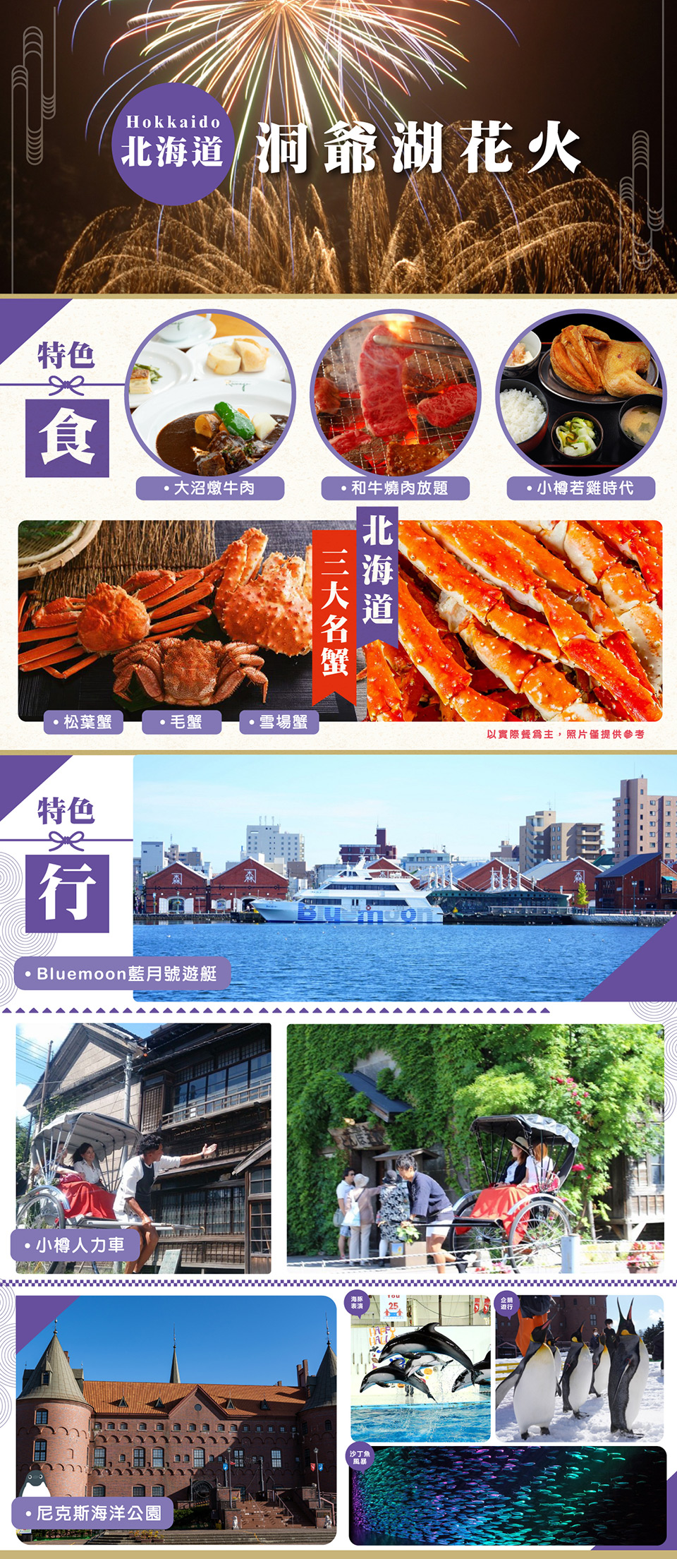 *已包含門票:尼克斯海洋公園、函館山來回纜車、Bluemoon藍月號遊艇