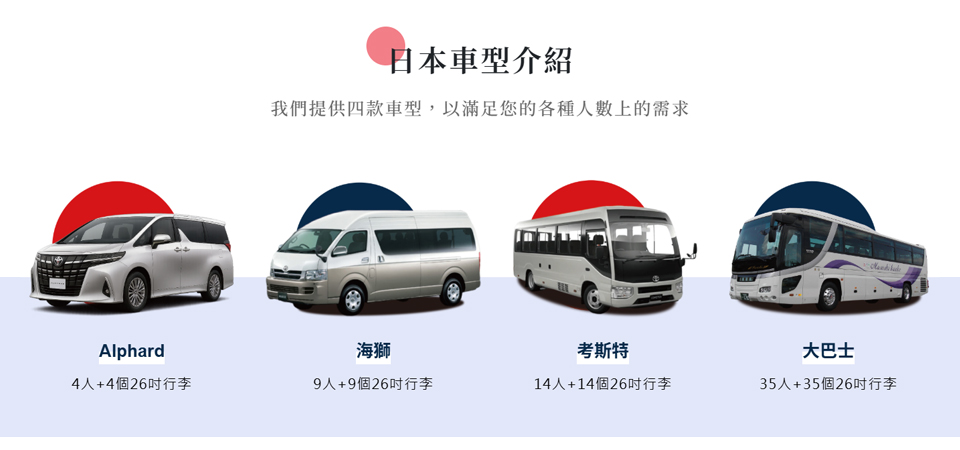 *基於安全考量,自2008年6月1日起,日本交通法規規定,所有乘客(包含後座)均需繫上安全帶,敬請貴賓配合。