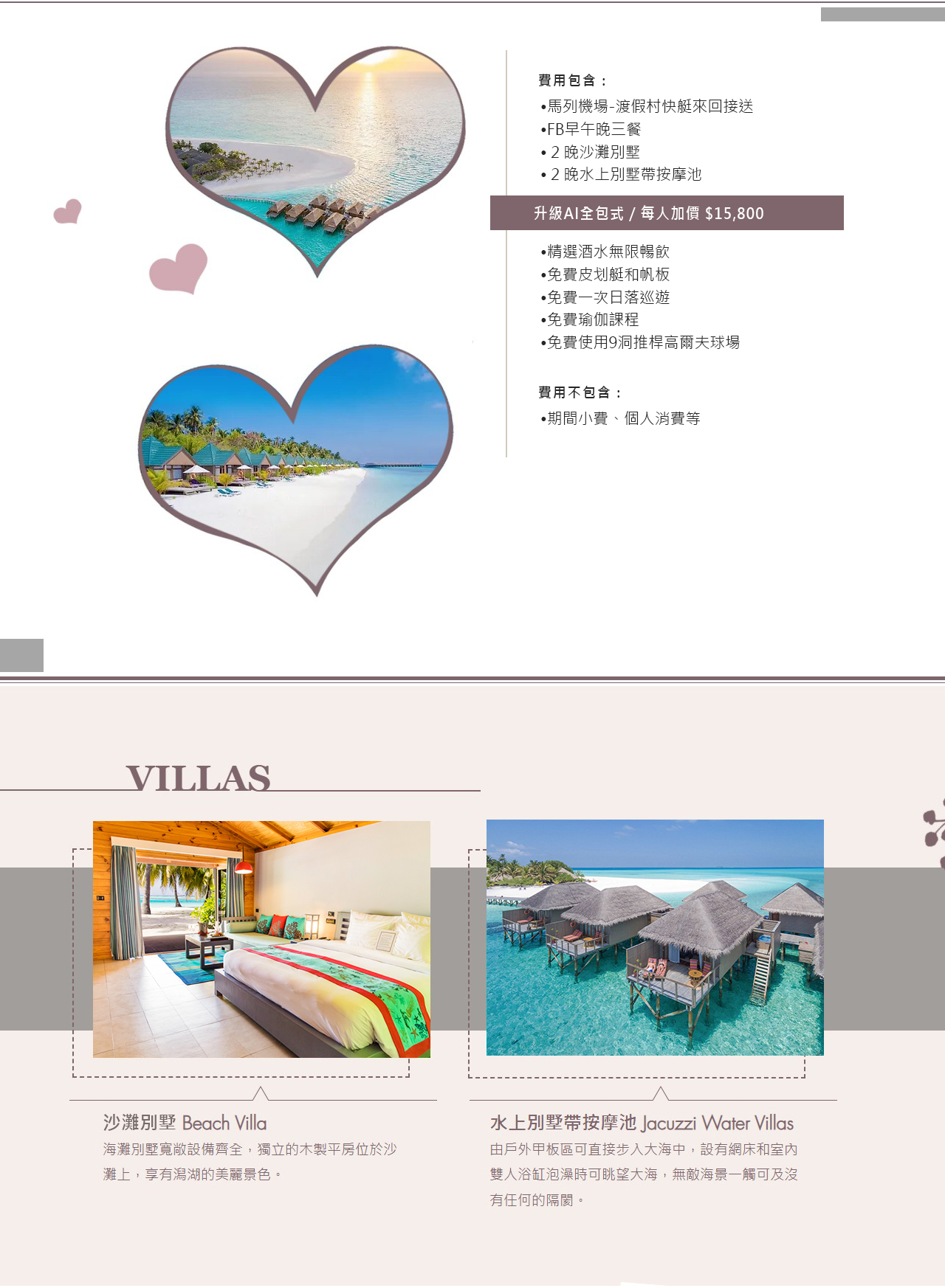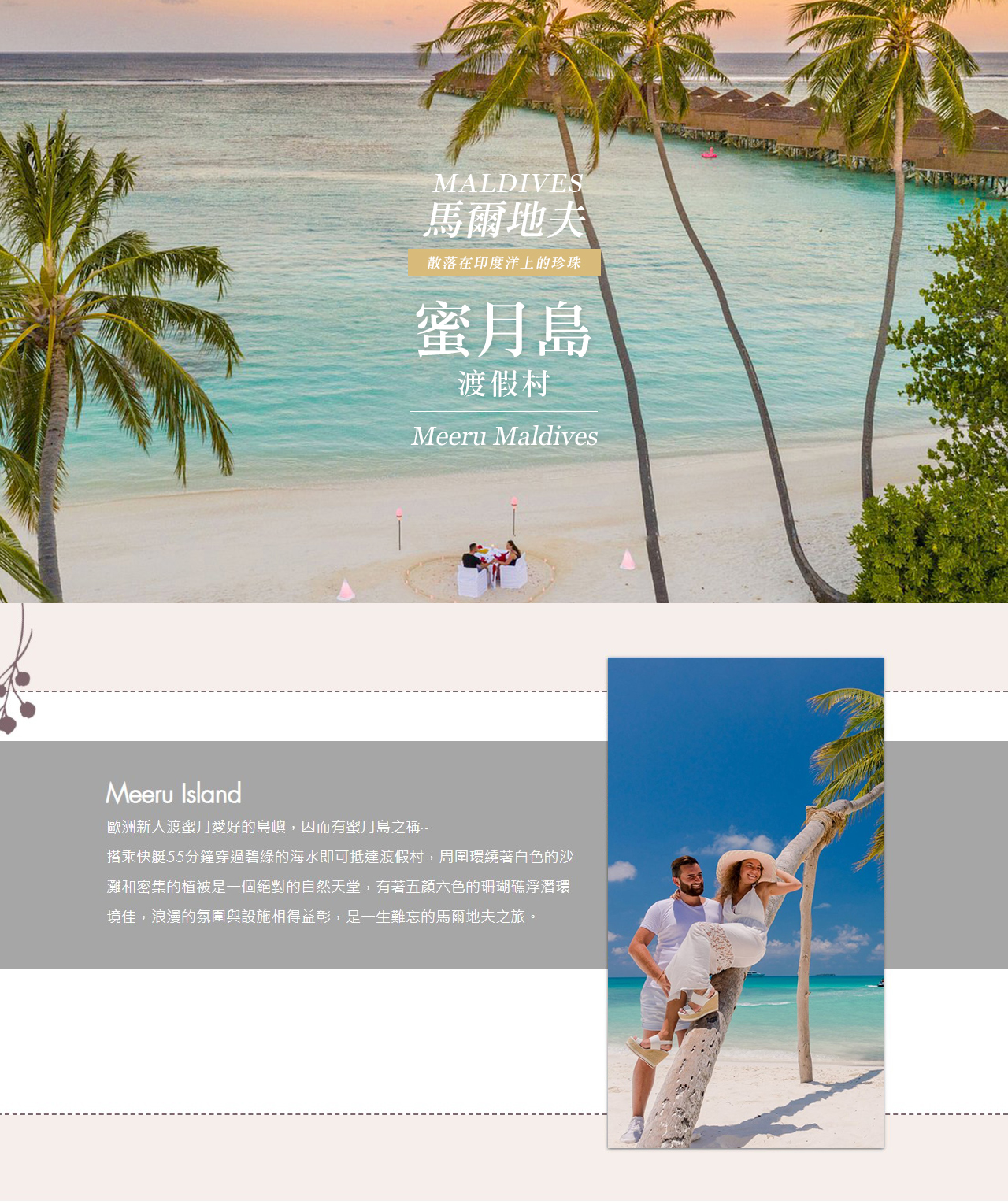 可自由搭配 臺北桃園出發,由第三地轉機抵達馬爾地夫之國際航班,機票費用另計。